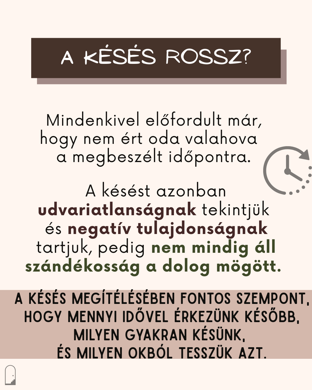 Mindenkivel előfordult már, hogy nem ért oda valahova a megbeszélt időpontra. A késést azonban udvariatlanságnak tekintjük és negatív tulajdonságnak tartjuk, pedig nem mindig áll szándékosság a dolog mögött.