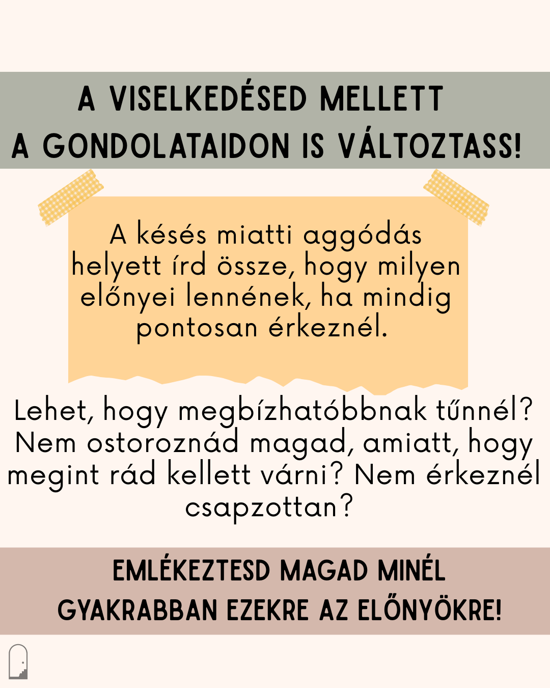 A késés miatti aggódás helyett írd össze, hogy milyen előnyei lennének, ha mindig pontosan érkeznél.