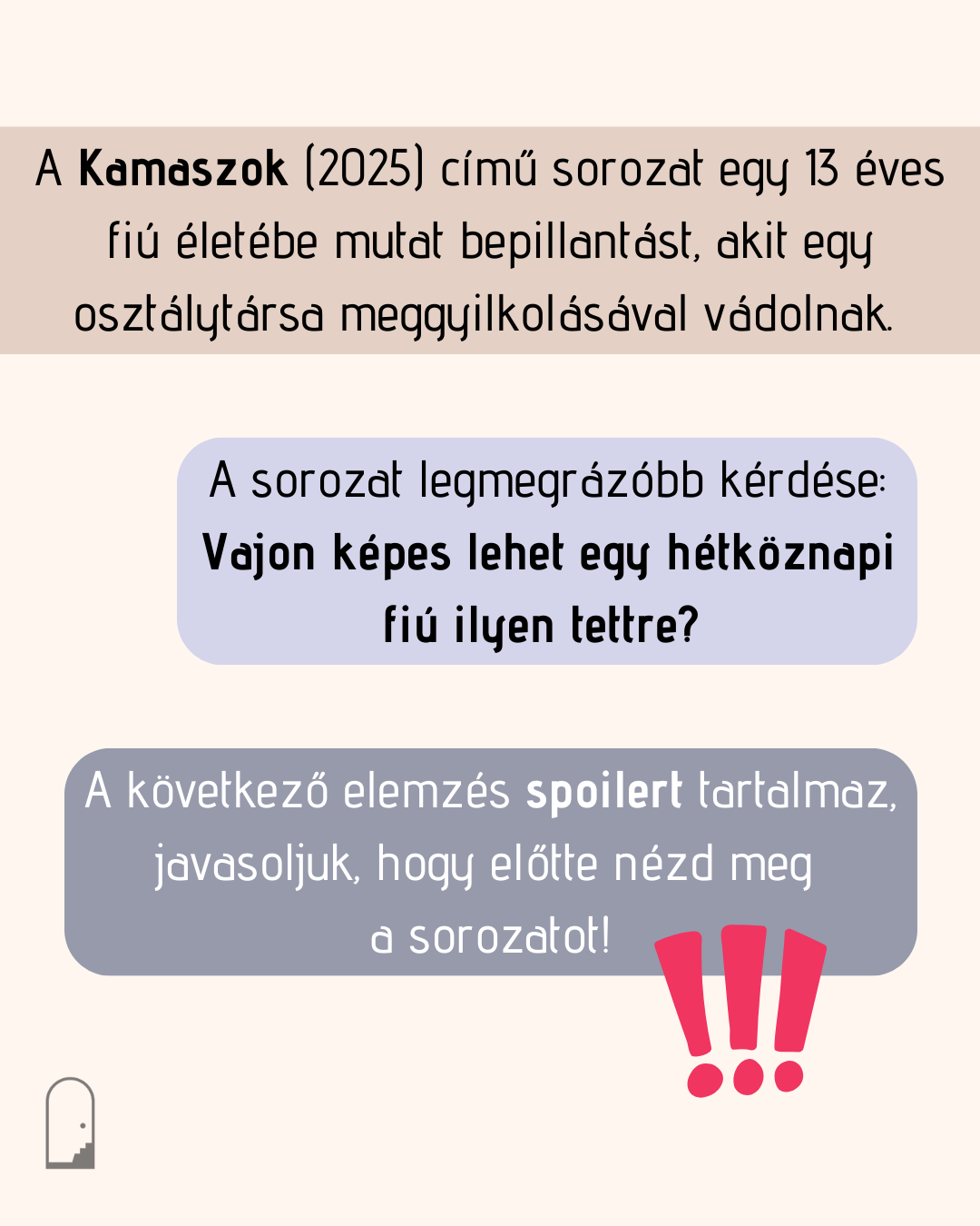 A Kamaszok (2025) című sorozat egy 13 éves fiú életébe mutat bepillantást, akit egy osztálytársa meggyilkolásával vádolnak. A sorozat legmegrázóbb kérdése: Vajon képes lehet egy hétköznapi fiú ilyen tettre? A következő elemzés spoilert tartalmaz, javasoljuk, hogy előtte nézd meg a sorozatot!