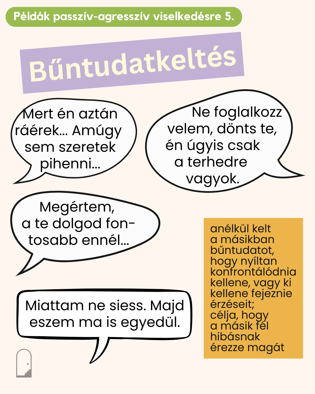 • anélkül kelt a másikban bűntudatot, hogy nyíltan konfrontálódnia kellene, vagy ki kellene fejeznie érzéseit;